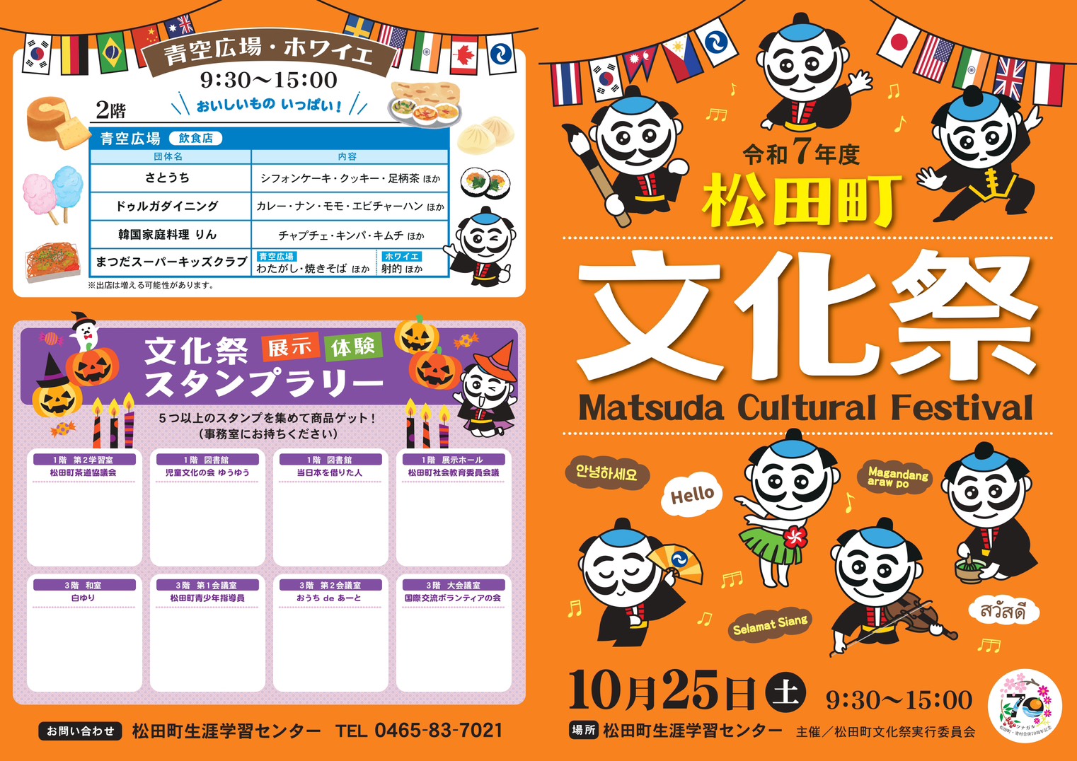 The Matsuda International Exchange Volunteers will have an international booth at the Matsuda Town Cultural Festival.