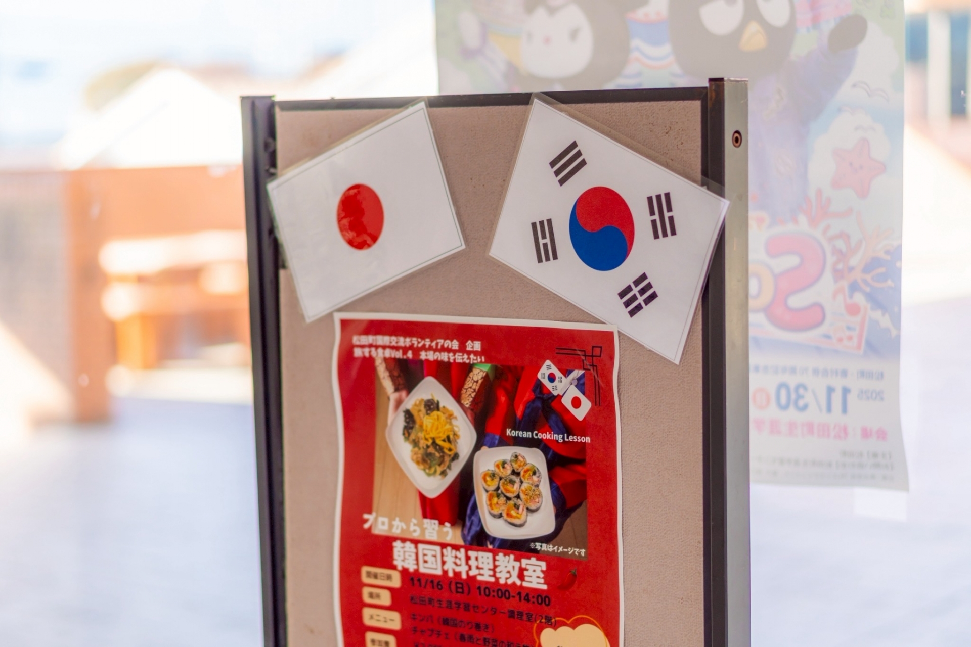 近隣大学の韓国人留学生にもお手伝いいただき、言語や文化についても学びました。